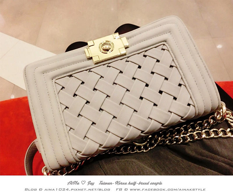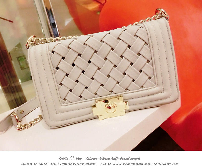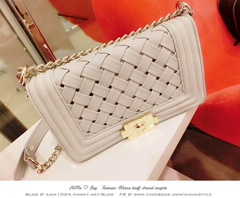 貼心連結:經典菱格編織鏈條包-編織杏灰 價格 NT$ 1890(目前特價中)