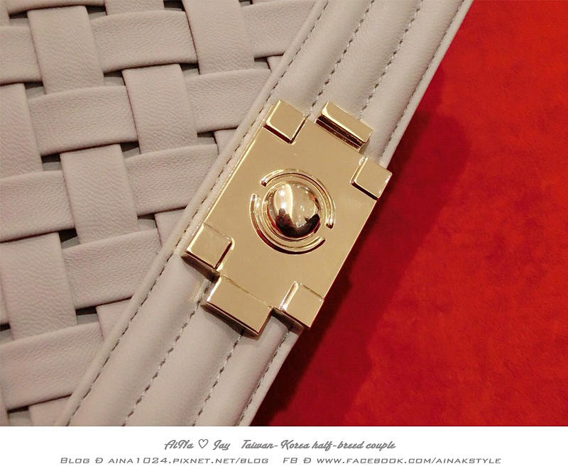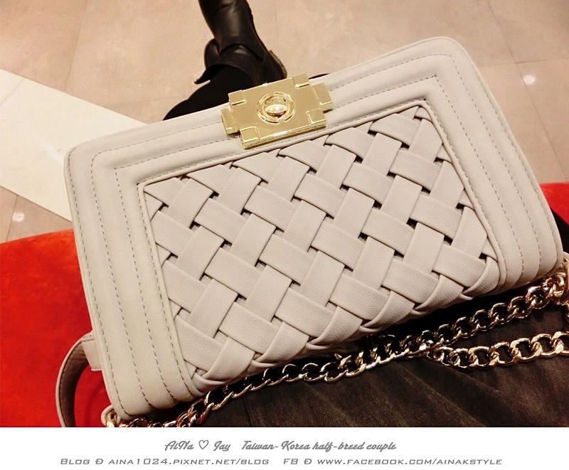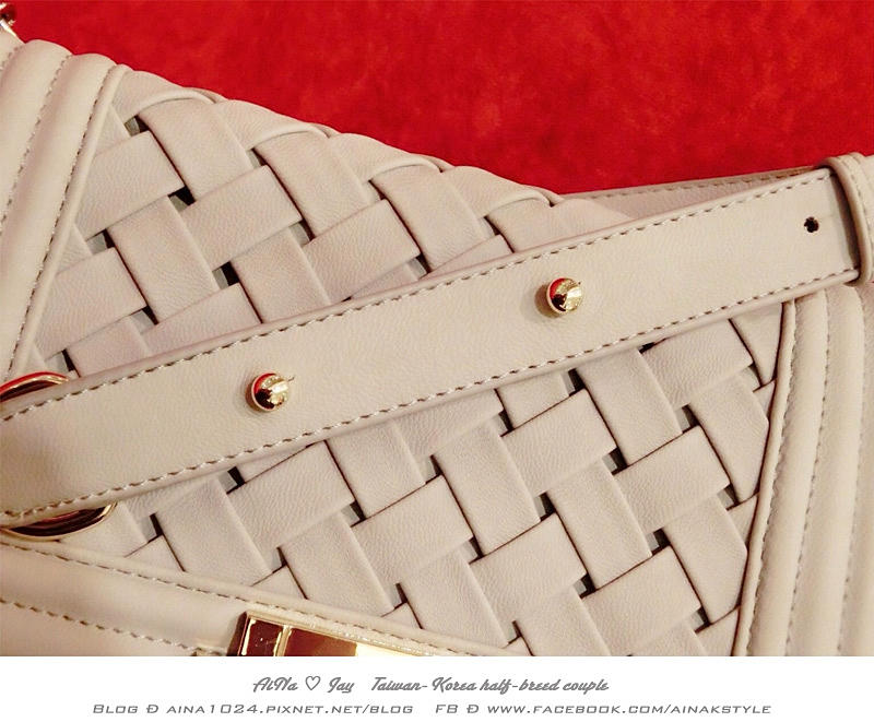 這款還有一點很吸引我的地方就是它的包包紋路很特別 是菱格編織的樣式 還滿有特色的