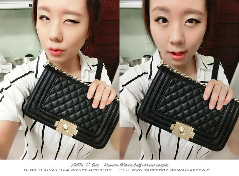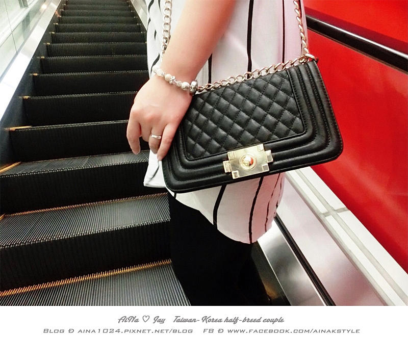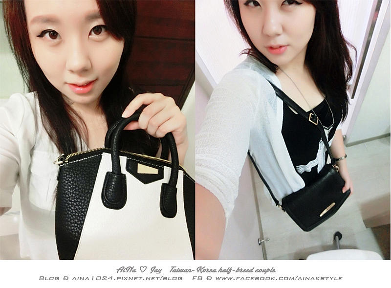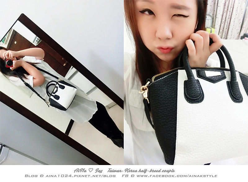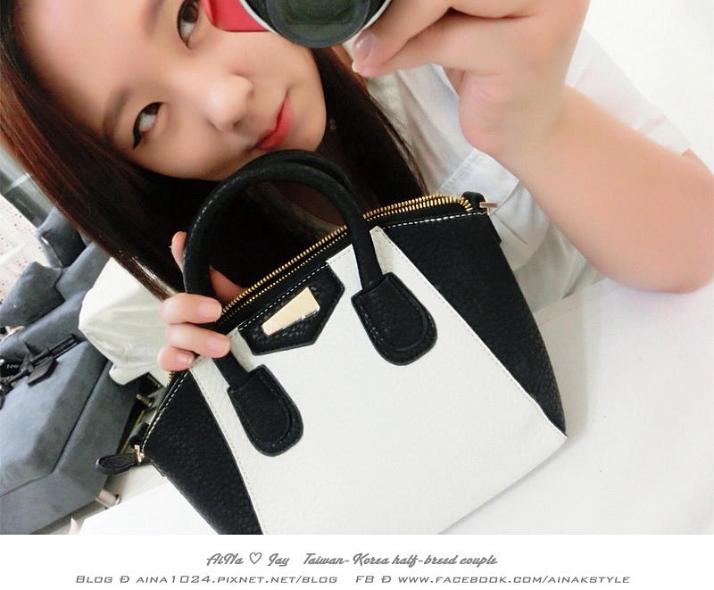 平時喜歡穿黑色系列衣服的AiNa來說 給自己一個亮點包包搭配 這種白灰色是在好不過了
