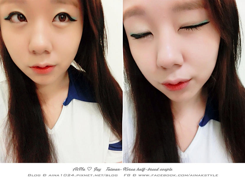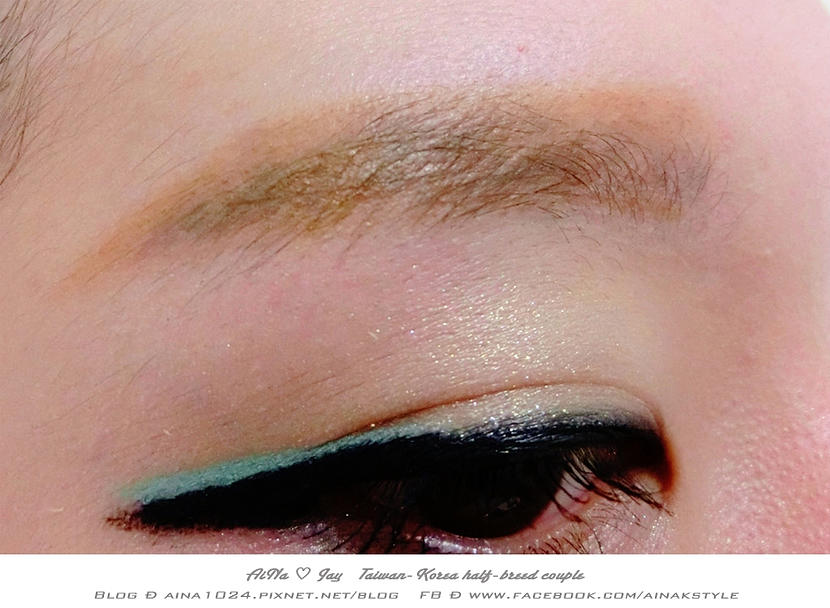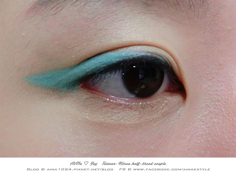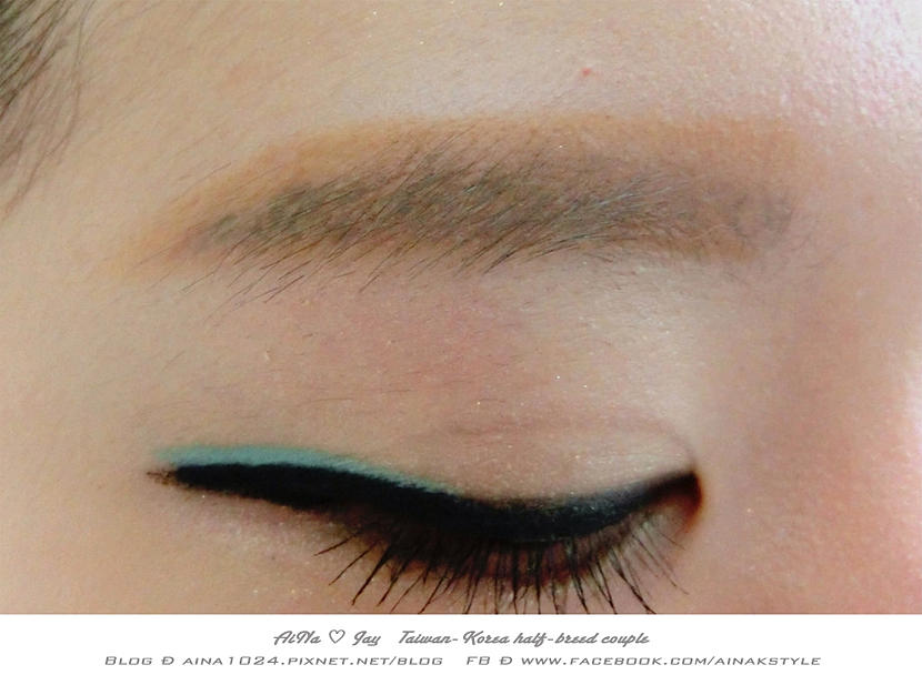 這種顯色眼線是不是很好看啊?因為是從眼睛中間開始往後畫 所以才自然喔!