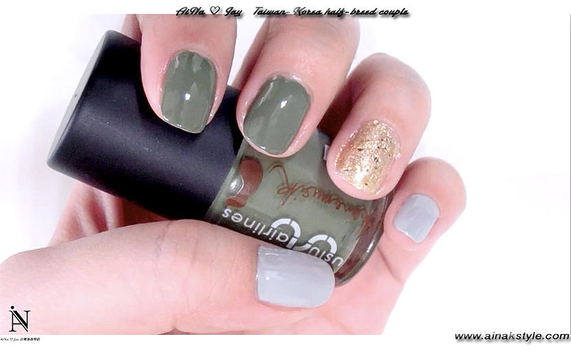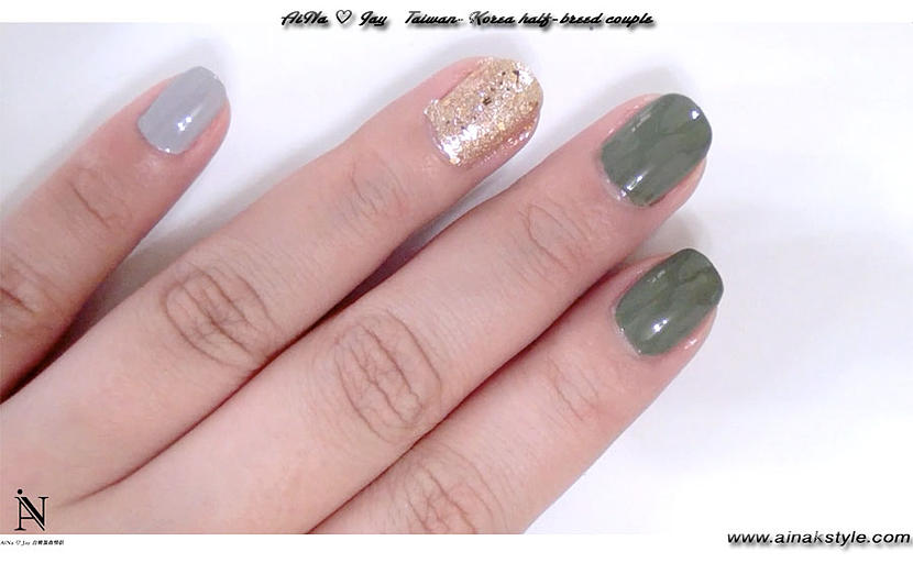 AiNa 要教大家如何在家DIY出適合這款是的“迷彩綠”色系的美甲搭配喔!