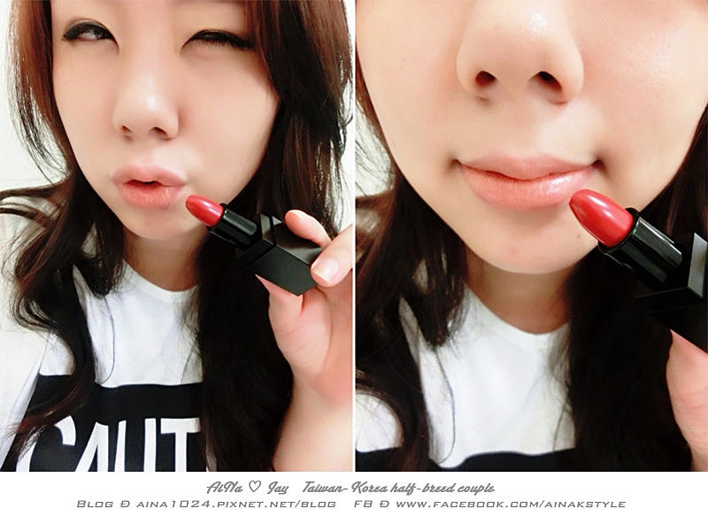 再來就是鮮紅色囉XD 因為 AiNa 的嘴脣不薄 所以不敢全上紅色唇膏